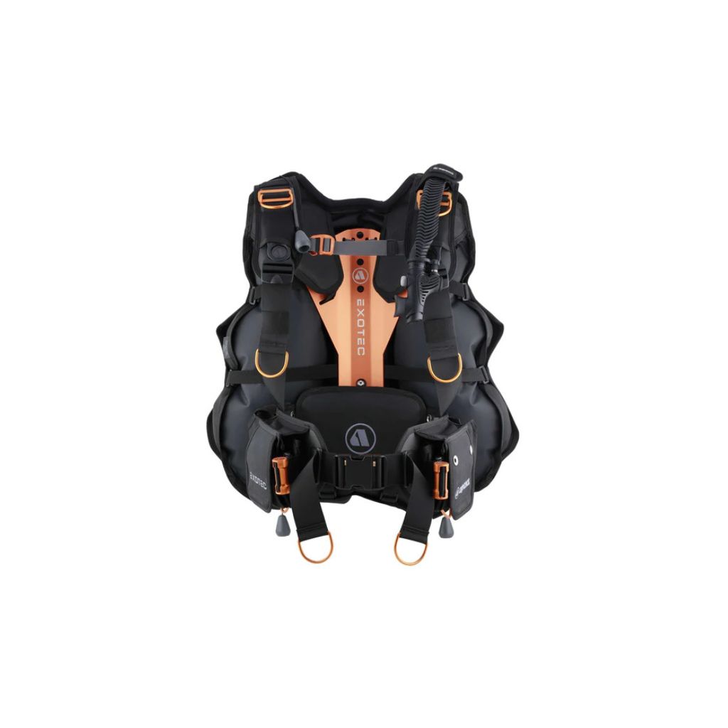 Apeks Exotec BCD to rewolucja w komforcie nurkowania, funkcjonalności i nowoczesnym designie technicznym. Exotec to synteza sprzętu i nurka. Zaprojektowany tak, aby pasował jak żaden inny BCD i poruszał się zgodnie z naturalnymi ruchami ciała nurka, dzięki innowacyjnemu kształtowaniu BioReact. Zbudowany by sprostać wymagającym standardom jakości Apeksa, Exotec jest doskonały pod względem formy i funkcji.