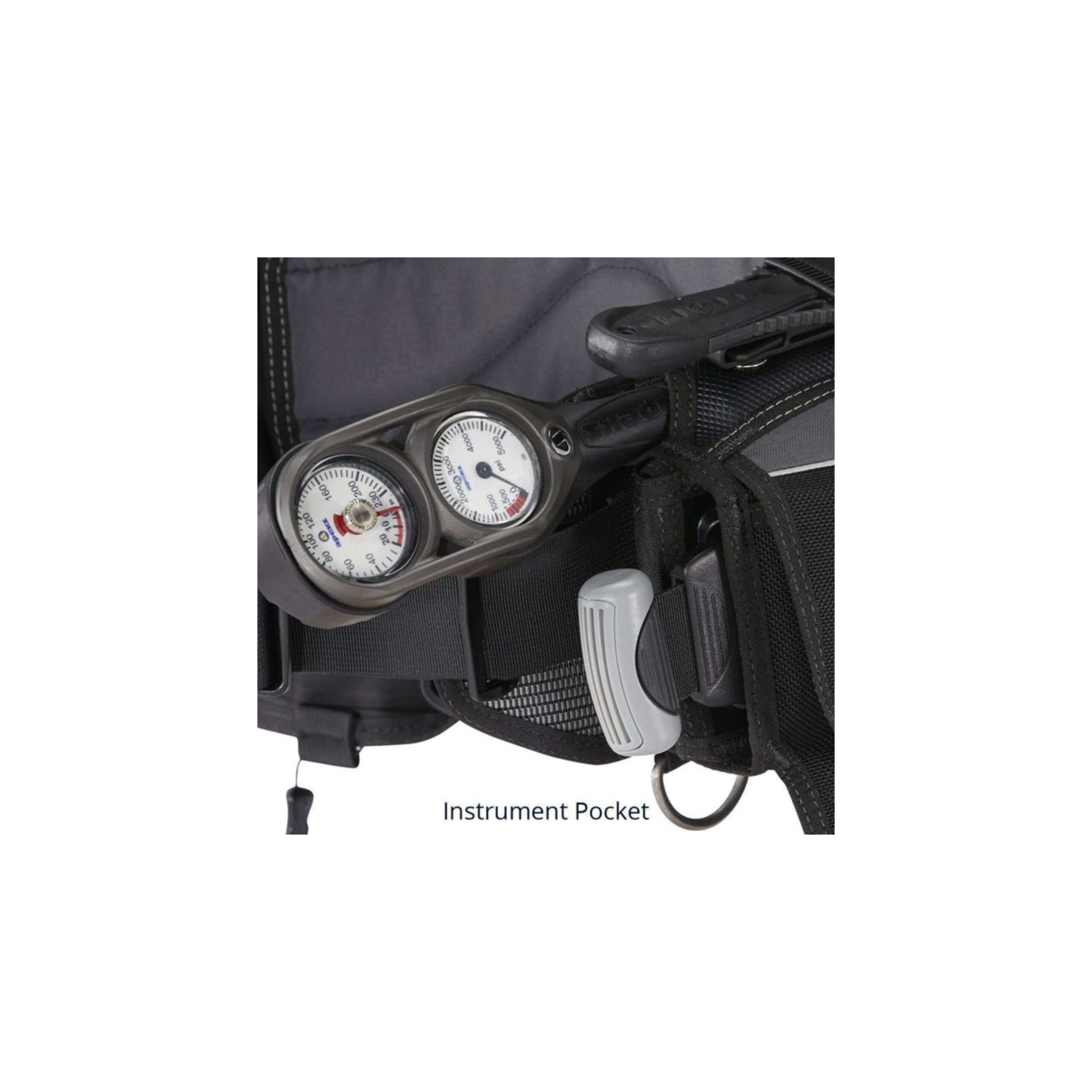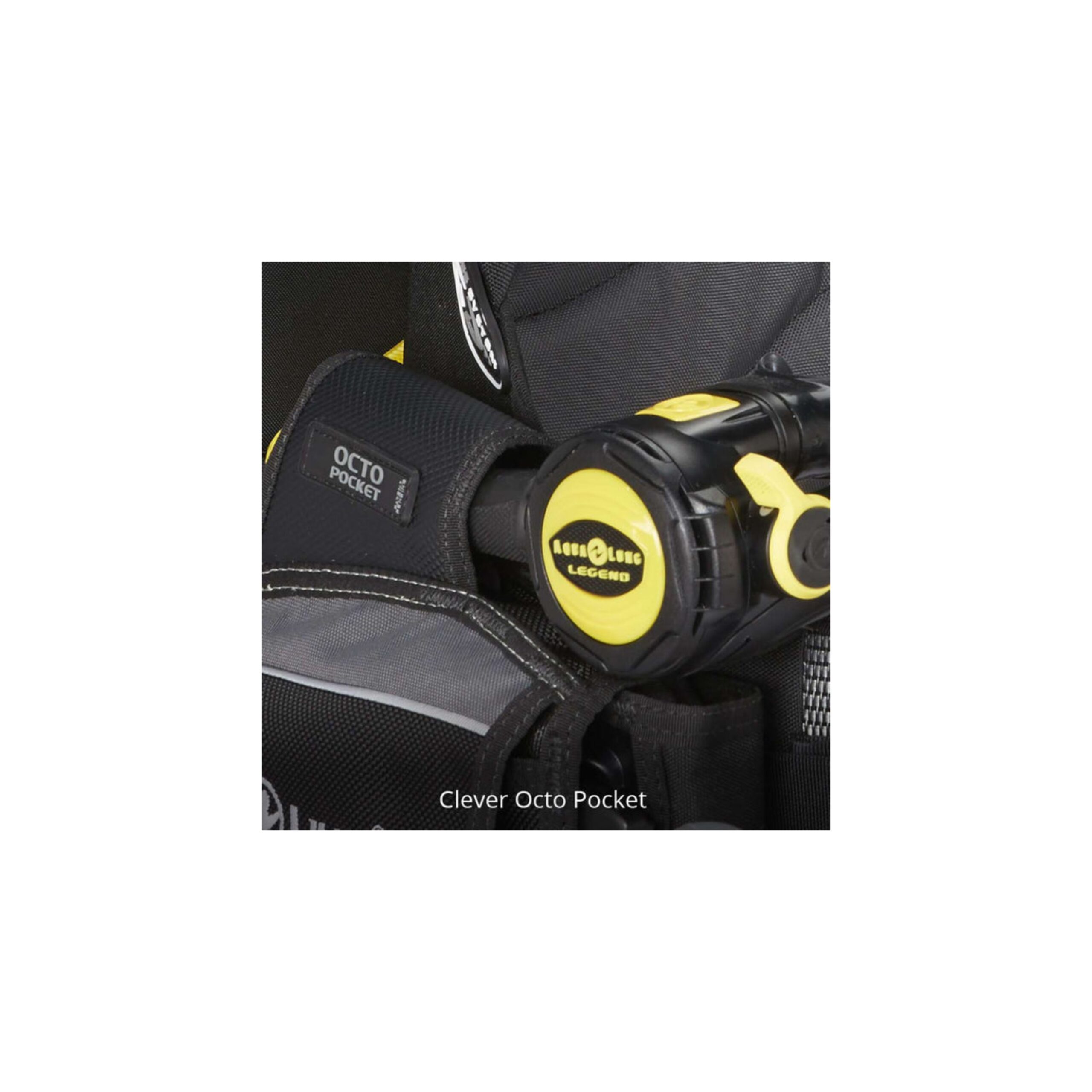 - Kieszenie balastowe, których nie można podkopać: Kieszenie te, znajdujące się z tyłu BCD, pomagają osiągnąć prawidłowe ułożenie w wodzie