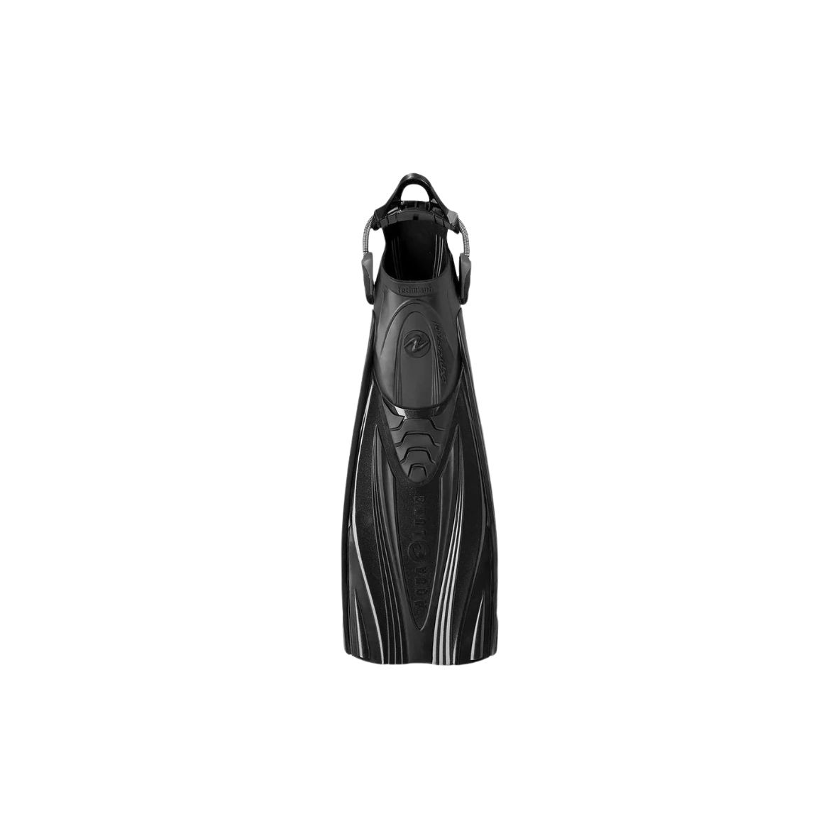 - Hydrodynamiczna konstrukcja – gumowe boczne żebra kierują wodę wzdłuż płetwy, redukując opór i maksymalizując efektywność kopnięcia.