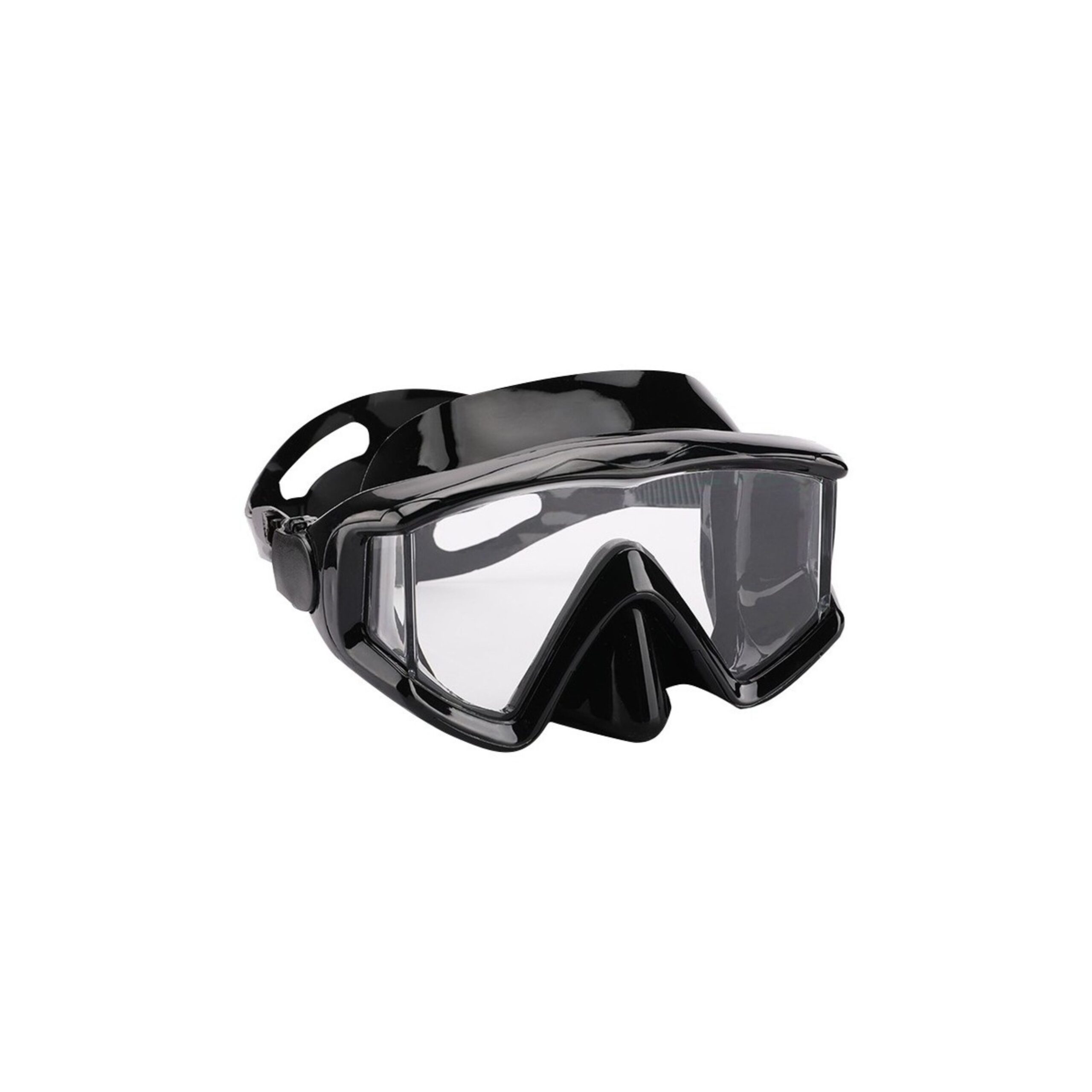 Oprócz dużego pojedynczego szkła, wyposażona jest w dwie boczne szyby. Maska wykonana jest z bardzo miękkiego silikonu z łatwością dopasowując się do twarzy. Zaczepy regulujące pasek zamontowane są po bokach maski zapewniając optymalne ułożenie na twarzy.