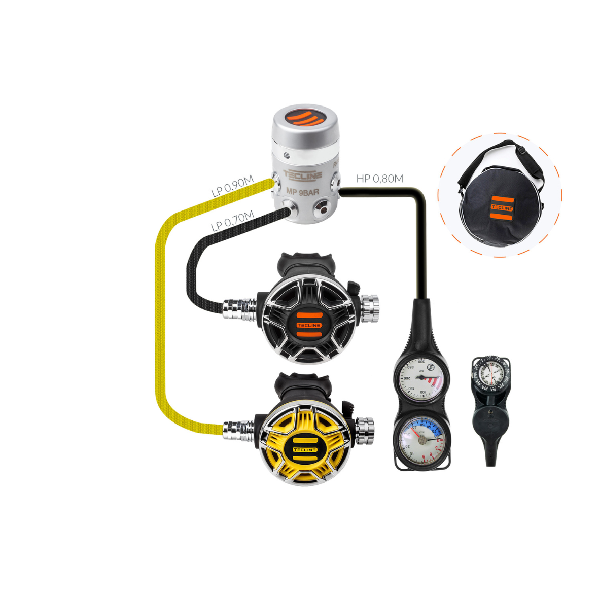 Zestaw Tecline R2 TEC2 z oktopusem i konsolą 3-el. wyróżnia się wyjątkową trwałością, a przy tym niezawodnością, dlatego doskonale sprawdza się zarówno w wodach polskich, jak i podczas nurkowań zagranicznych. Materiały najwyższej jakości oraz przemyślana konstrukcja zapewniają komfort użytkowania i długą żywotność sprzętu, a możliwość dopasowania węży i torby pozwala indywidualnie skonfigurować zestaw pod własne potrzeby.