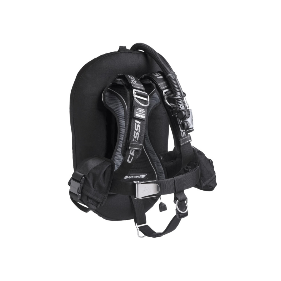 Aquawing Plus został zaprojektowany do pracy z pojedynczą butlą nurkową. Zintegrowany uchwyt z gumy termoplastycznej skutecznie stabilizuje cylinder i zapobiega jego przesuwaniu się.