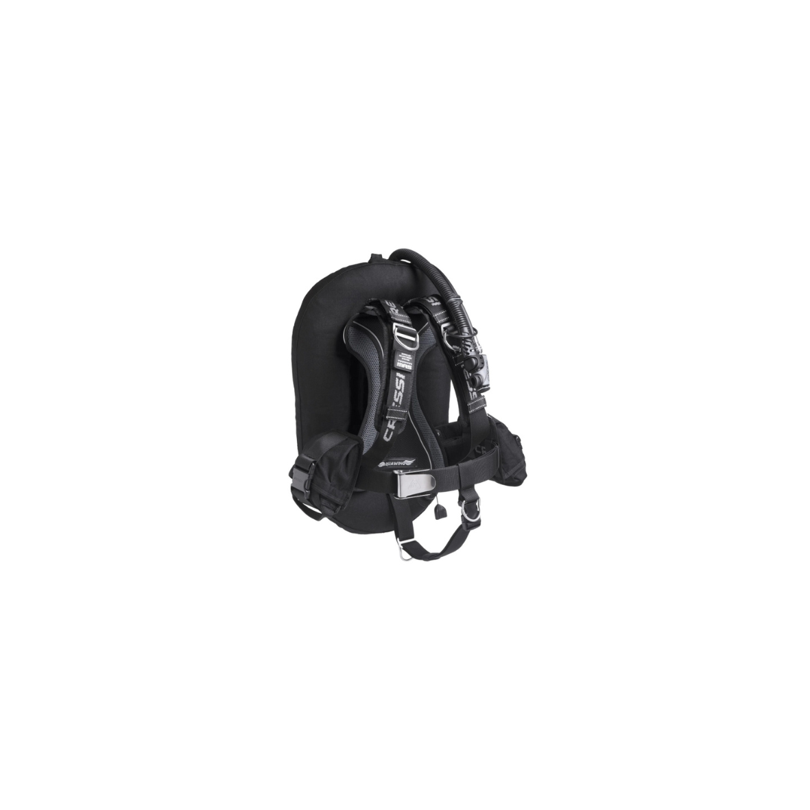 Konstrukcja donut o wyporności 12 kg / 27 lb zapewnia równomierne rozłożenie powietrza, co poprawia trym i eliminuje niekontrolowane przemieszczanie się gazu. Zintegrowany pas kroczny zapobiega podnoszeniu się jacketu na powierzchni, a jednocześnie zwiększa stabilność podczas nurkowania. Z kolei zintegrowany uchwyt na butlę z wytrzymałej gumy termoplastycznej skutecznie utrzymuje cylinder w jednej pozycji.