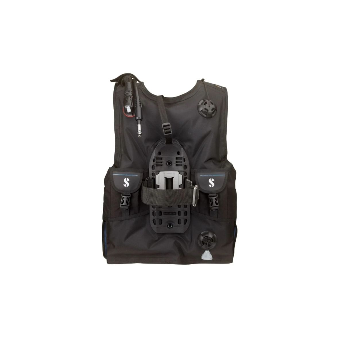 Ten jacket Scubapro Level został wykonany z wytrzymałej tkaniny EndurTex 420, która gwarantuje lekkość i długą żywotność. Owijany pęcherz doskonale dopasowuje się do sylwetki, nie powodując ucisku. Obrotowe klamry naramienne z szybkim wypinaniem ułatwiają regulację i dopasowanie, natomiast pas piersiowy oraz podwójny pas biodrowy zwiększają stabilność podczas nurkowania.