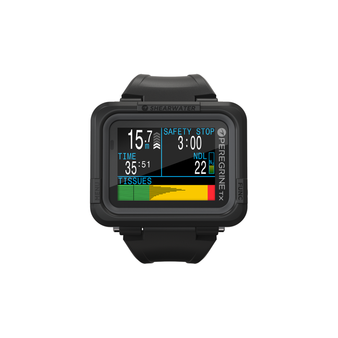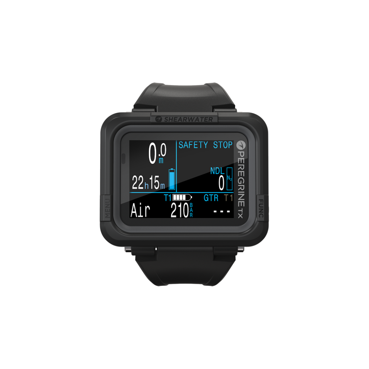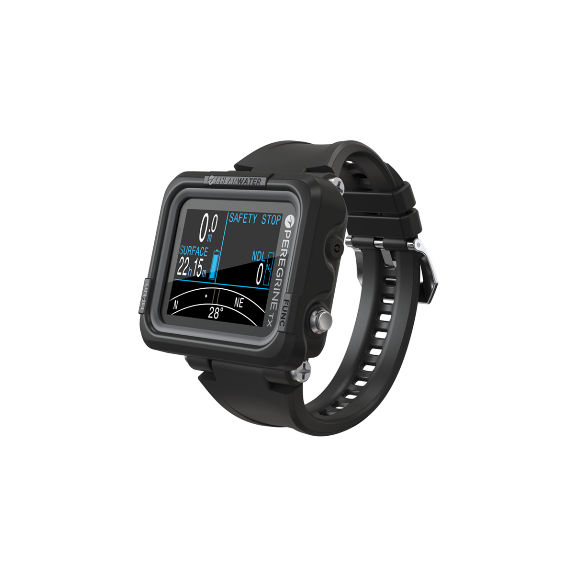 Komputer nurkowy Shearwater Peregrine TX oferuje kolorowy wyświetlacz o wysokim kontraście, który zapewnia doskonałą widoczność danych nawet w trudnych warunkach. Obsługuje cztery tryby nurkowania: Air, Nitrox, 3-gazowy Nitrox oraz Gauge, co czyni go wszechstronnym rozwiązaniem dla większości nurkowań rekreacyjnych. Peregrine TX posiada także nowy interfejs do łączności z transmiterem gazu.