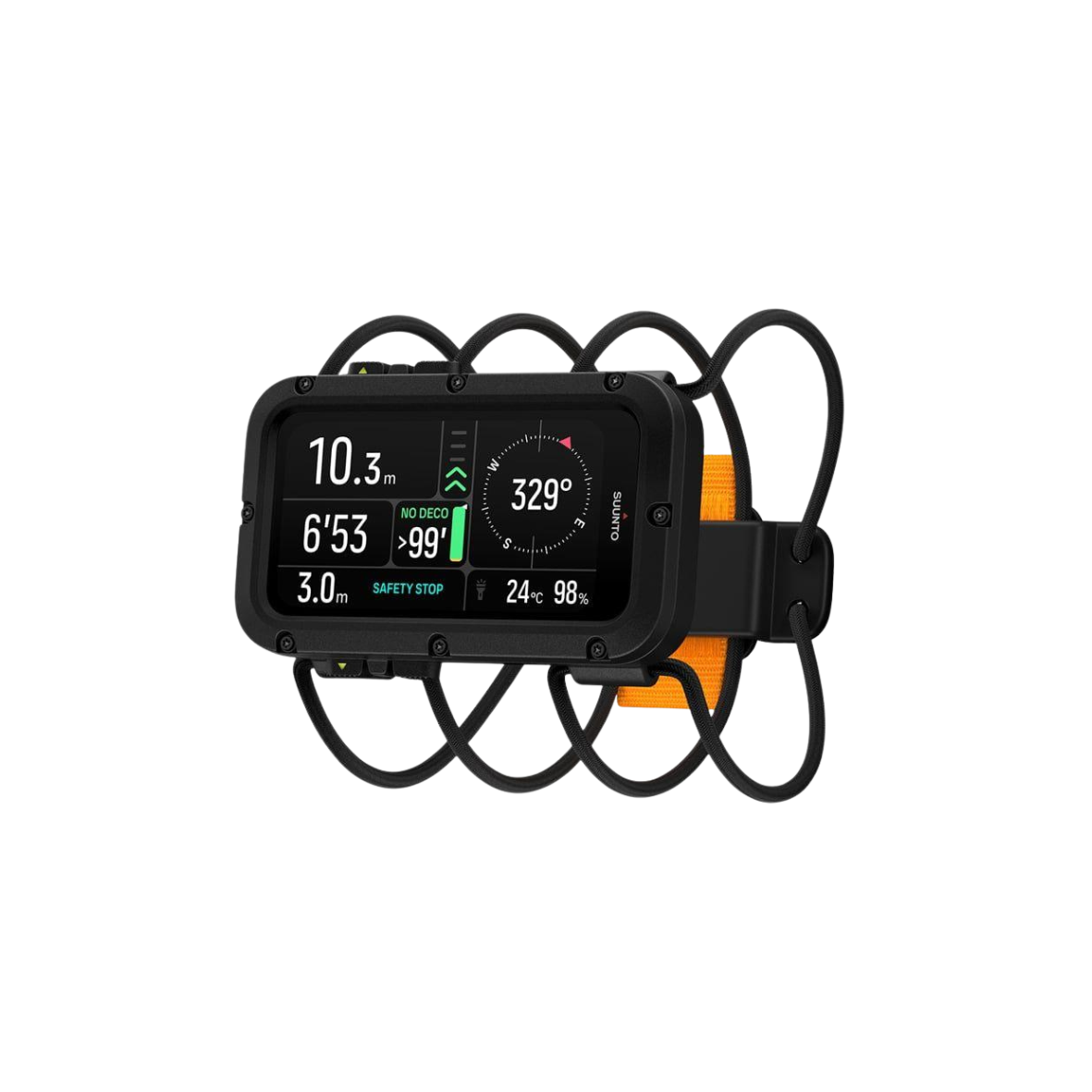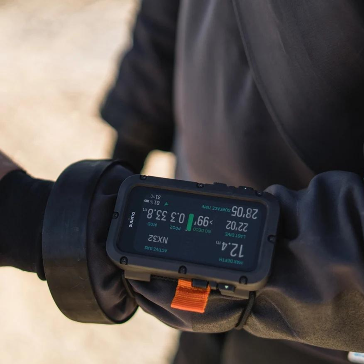 Wytrzymała, wodoodporna konstrukcja umożliwia wieloletnie użytkowanie nawet w ekstremalnych warunkach. Jasny wyświetlacz AMOLED zapewnia czytelność kluczowych danych, a intuicyjne przyciski dotykowe działają bez problemu nawet w grubych rękawicach do nurkowania. Elastyczny pasek z mocnym mocowaniem gwarantuje komfortowe dopasowanie do każdego skafandra.