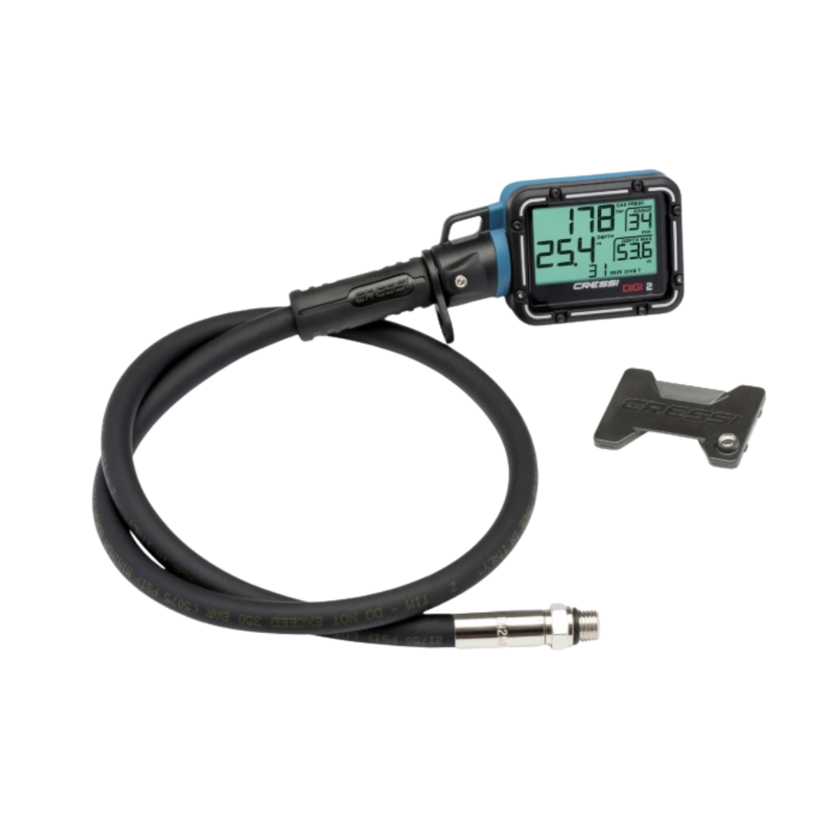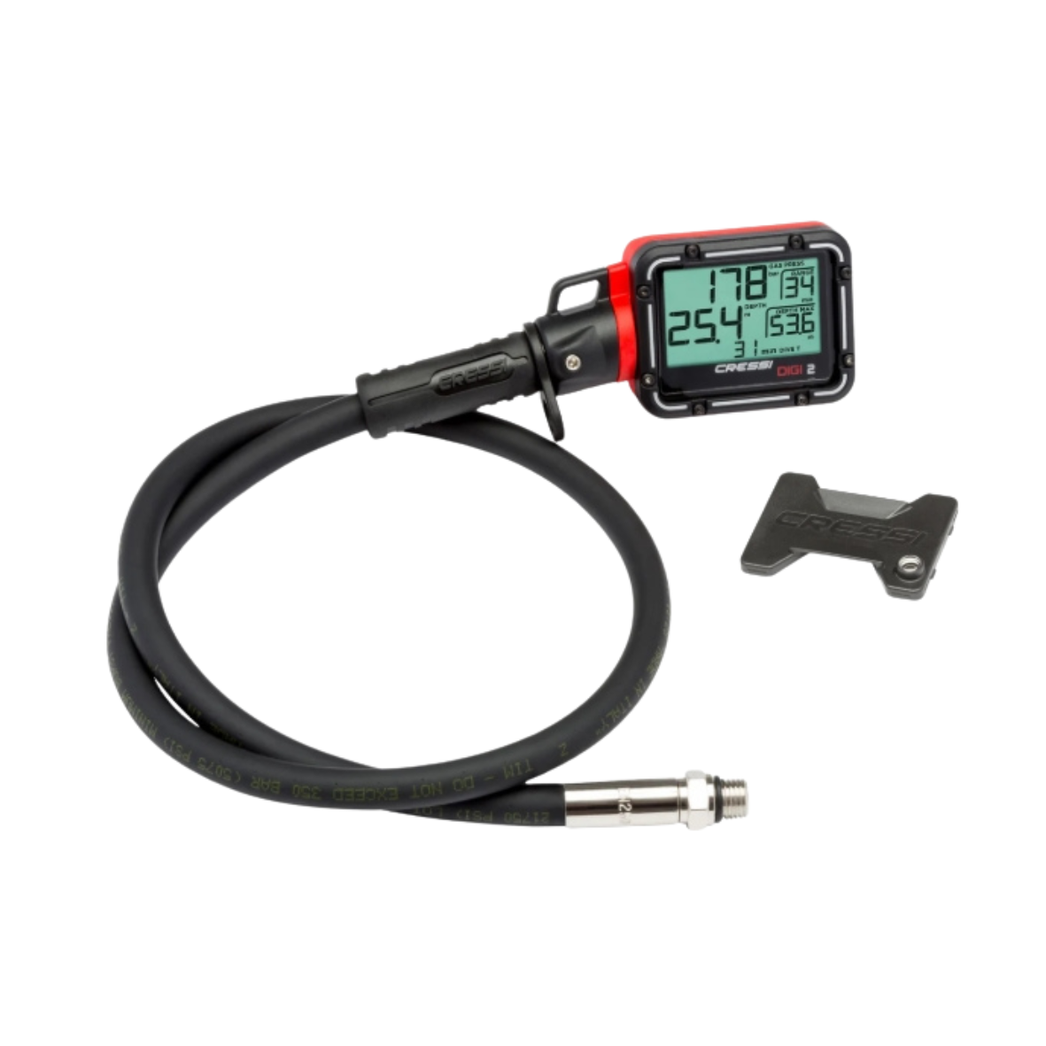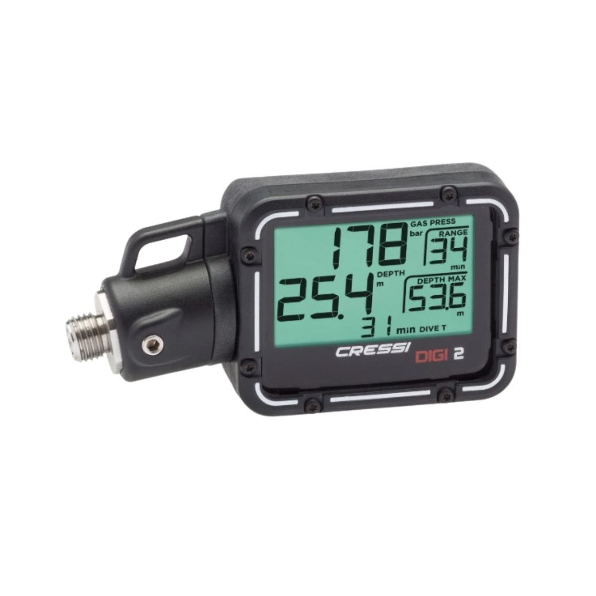 Cressi Digi 2 posiada obudowę odporną na wstrząsy, wykonaną z termoplastycznej powłoki gumowej. Ponadto urządzenie wyposażono w prostokątny, podświetlany ekran o wysokim kontraście. Co ważne, wszystkie dane na wyświetlaczu są oddzielone liniami, dzięki czemu odczyt informacji jest szybki i czytelny – nawet w rękawicach lub przy ograniczonej widoczności.