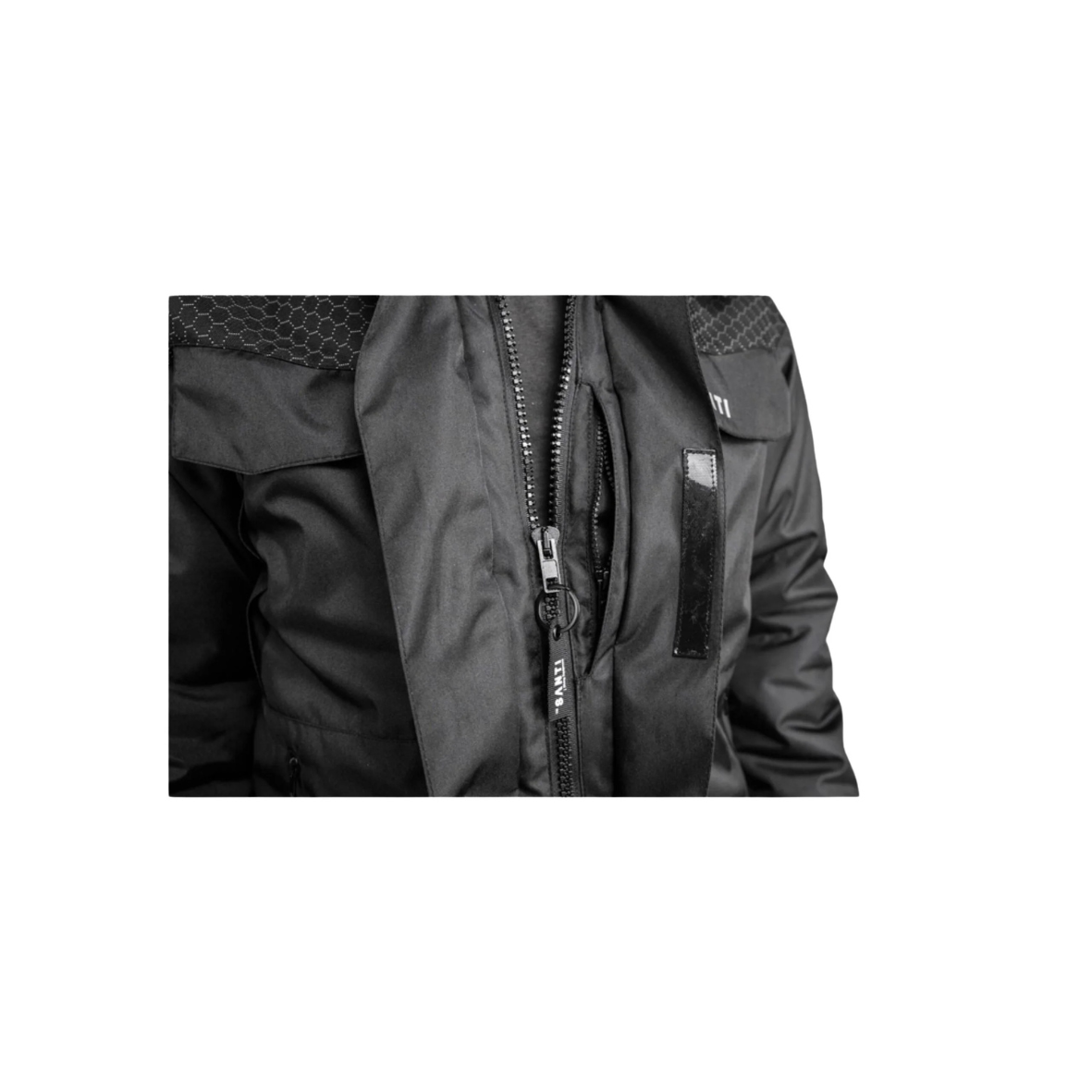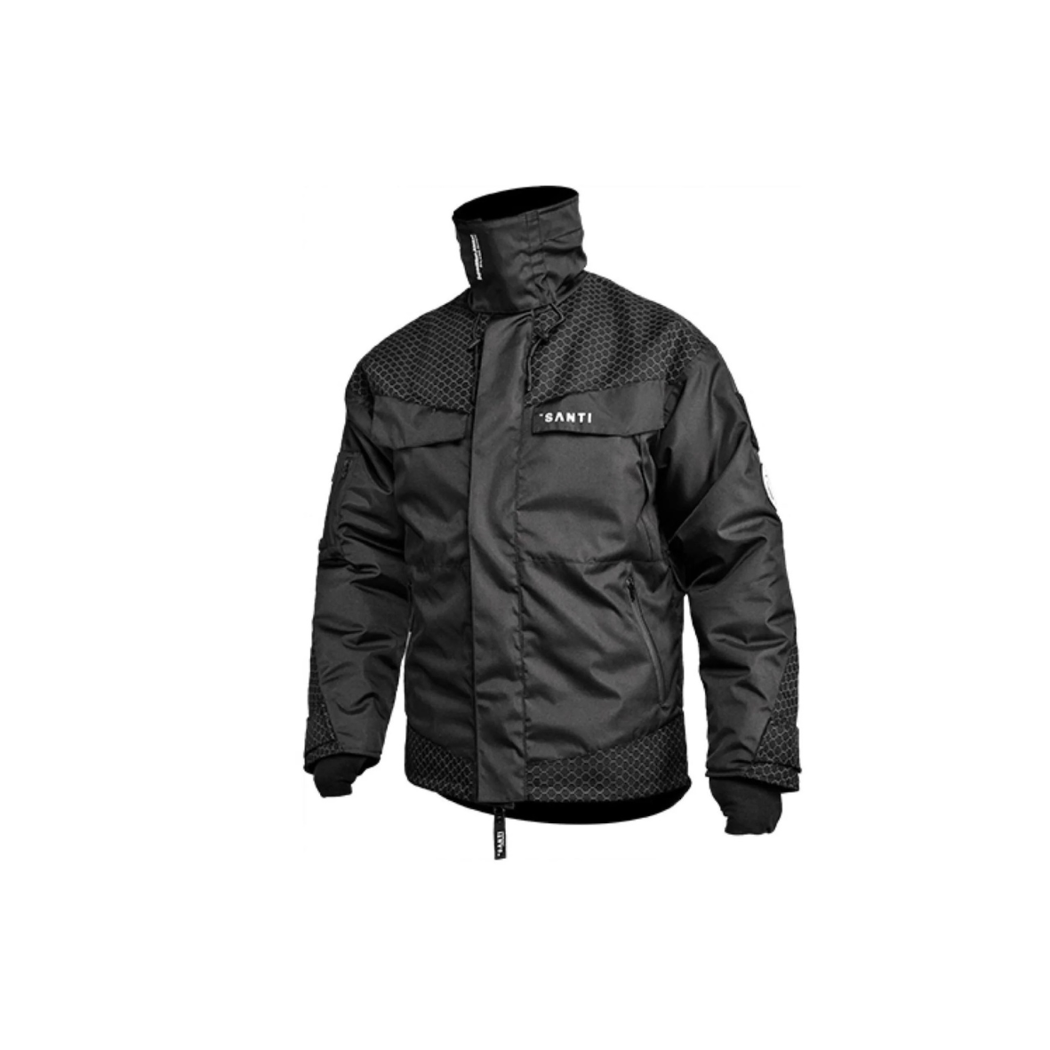 Na rękawach i dolnej części kurtki zastosowano wyjątkowo trwały, wodoodporny materiał Reflexgarn z odblaskowym wzorem plastra miodu. Jest on odporny na brud, przetarcia oraz tłuste substancje, dlatego kurtka świetnie sprawdza się w wymagającej aktywności outdoorowej. Dodatkowo na lewym rękawie umieszczono rzep umożliwiający zamocowanie emblematu z flagą, logo czy imieniem.
