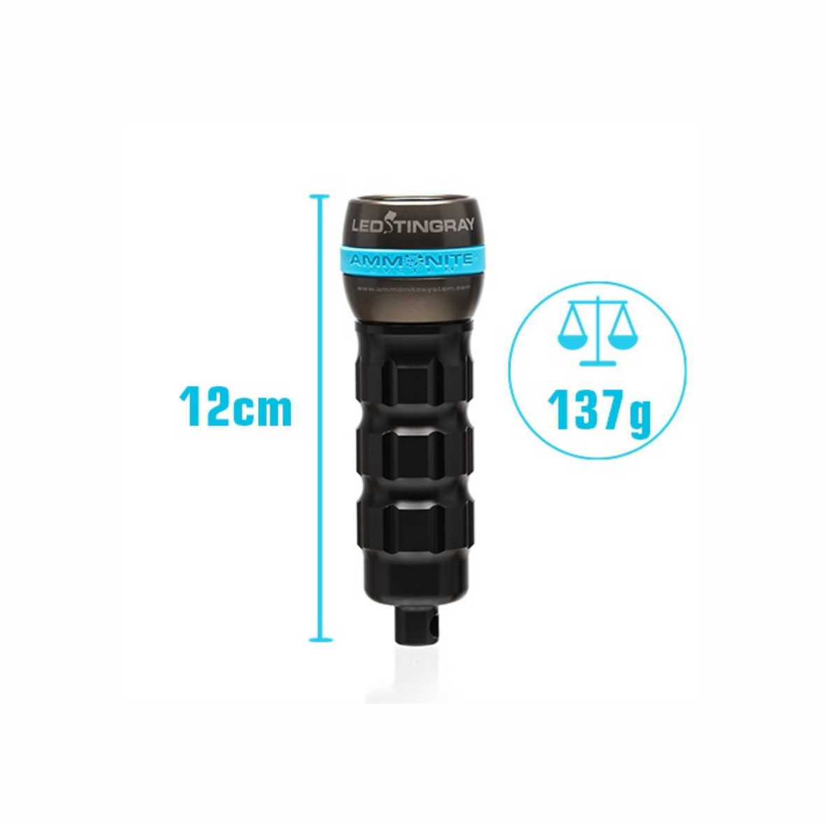 Latarka nurkowa Ammonite LED Mark II wykorzystuje 3 wysokowydajne diody LED o łącznej mocy 10 W. Generują one strumień światła do 1300 lm w chłodnej białej temperaturze barwowej, co poprawia kontrast i widoczność detali pod wodą.