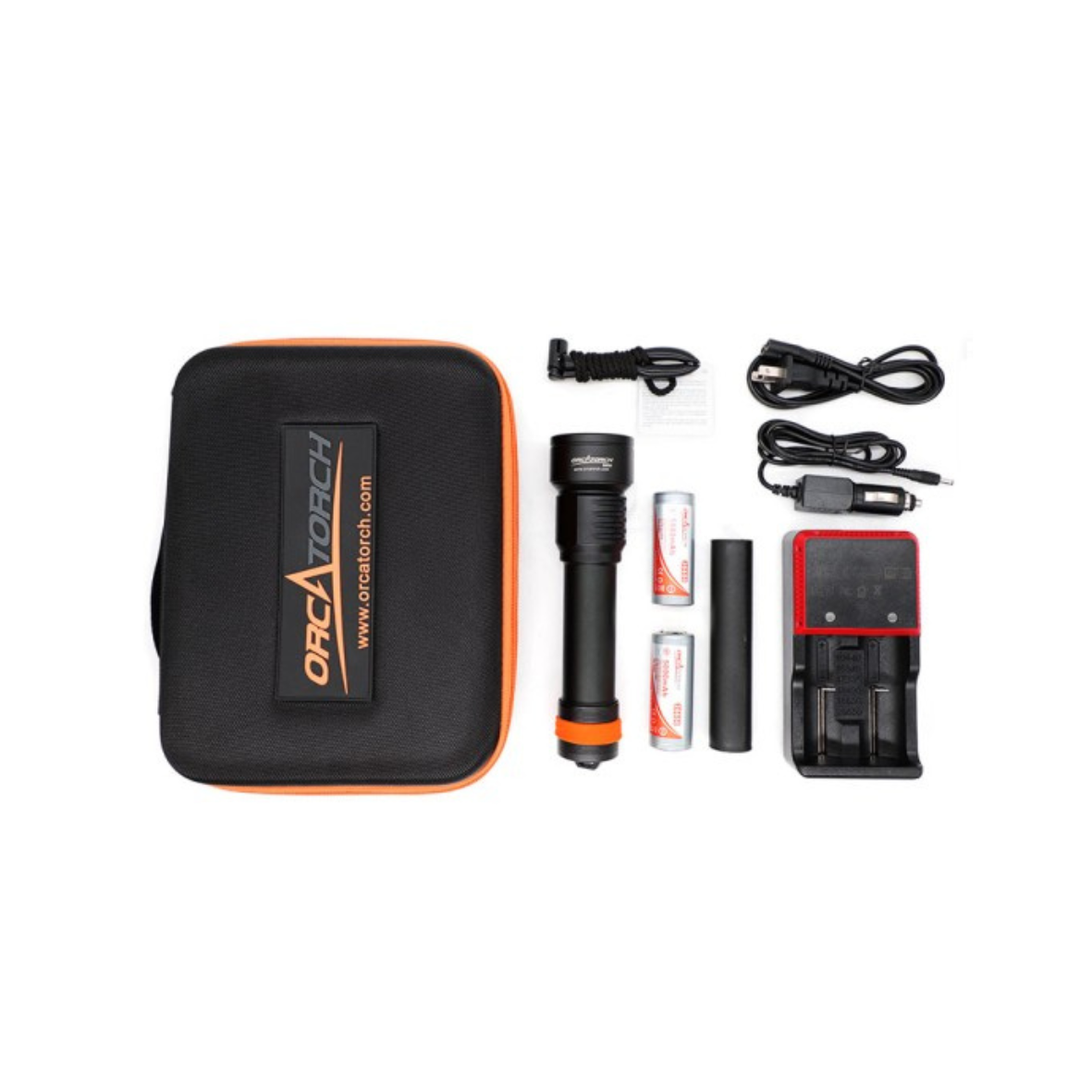 Latarka nurkowa OrcaTorch D511 to kompaktowa latarka glowna o mocy 2200 lumenow i waskiej wiazce 6°, zasilana akumulatorem 21700 5000 mAh z ladowaniem USB-C w akumulatorze. Lekka, solidna i wodoodporna do 150 m (IPX8), idealna do nurkowan nocnych i rekreacyjnych.