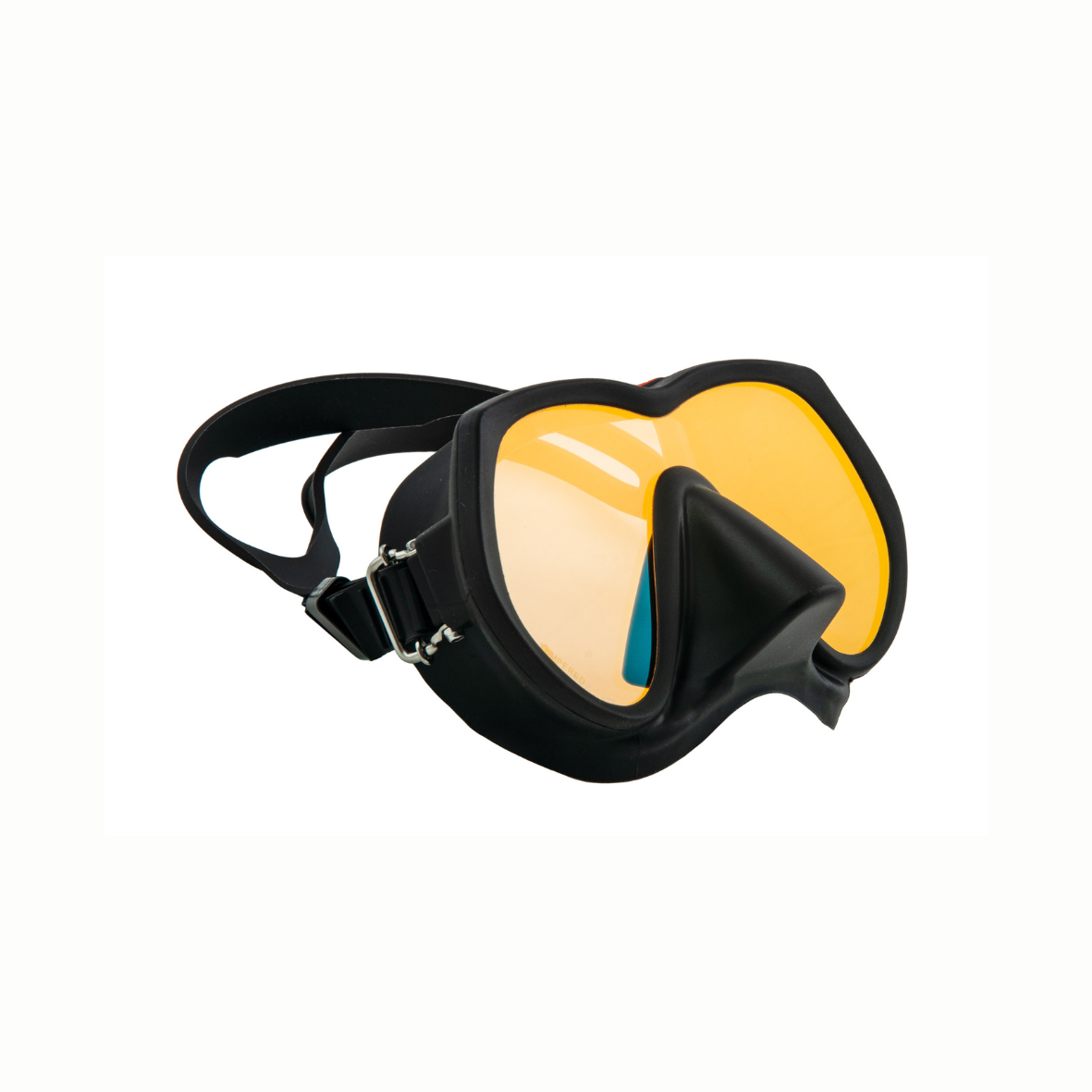 Dodatkowo miękki silikonowy kołnierz zapewnia szczelność, a jednocześnie wysoki komfort nawet podczas długich nurkowań. Regulowany pasek umożliwia szybkie dopasowanie maski, dlatego zakładanie i zdejmowanie jest wygodne nawet w rękawicach. Niska objętość wewnętrzna sprawia, że wyrównywanie ciśnienia oraz opróżnianie maski jest prostsze i bardziej efektywne.