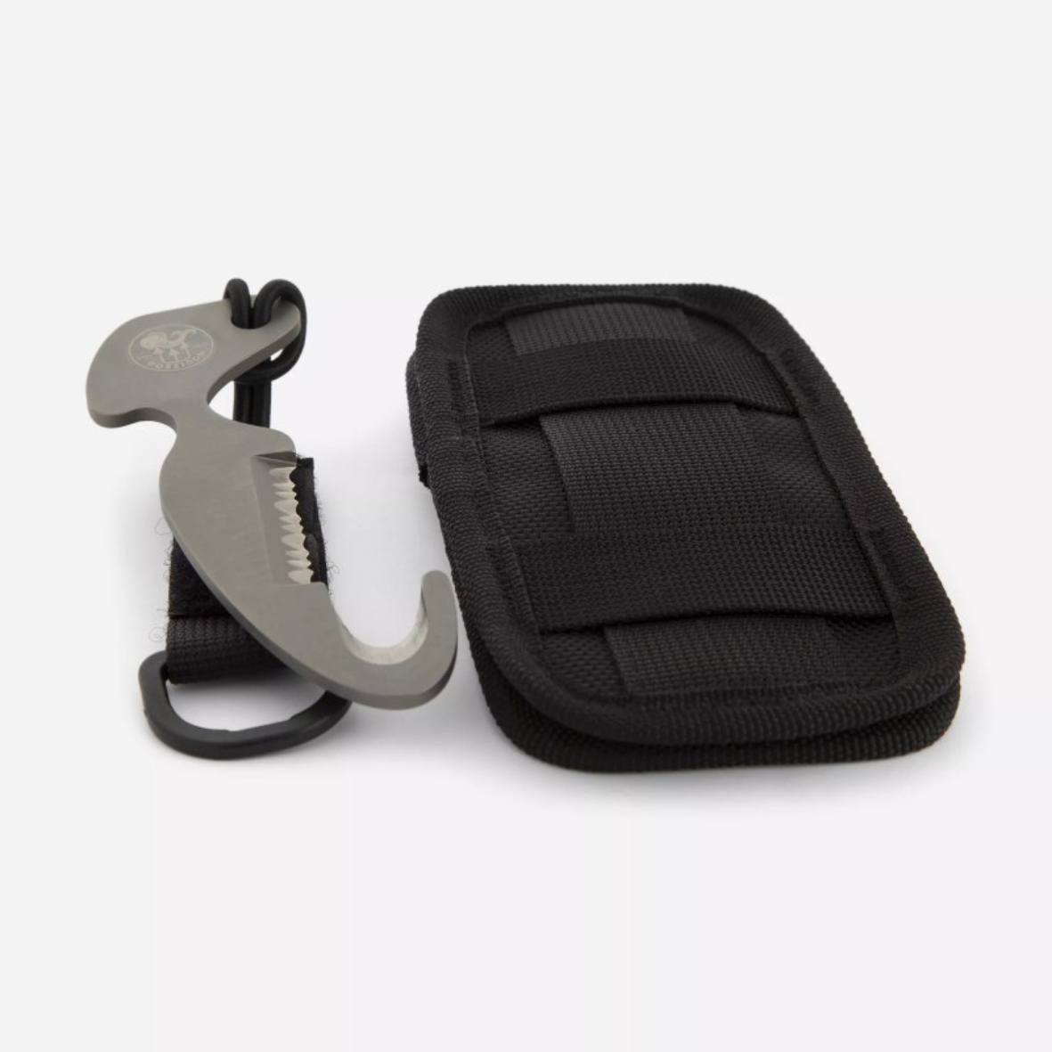 Nóż hakowy Poseidon Line Cutter to kompaktowe i niezwykle funkcjonalne narzędzie dla nurków, ponieważ umożliwia szybkie i bezpieczne przecinanie lin, sieci oraz innych przeszkód pod wodą. Dzięki zastosowaniu wytrzymałego stopu tytanu zapewnia wysoką odporność na korozję, dlatego sprawdza się nawet w najbardziej wymagających warunkach.