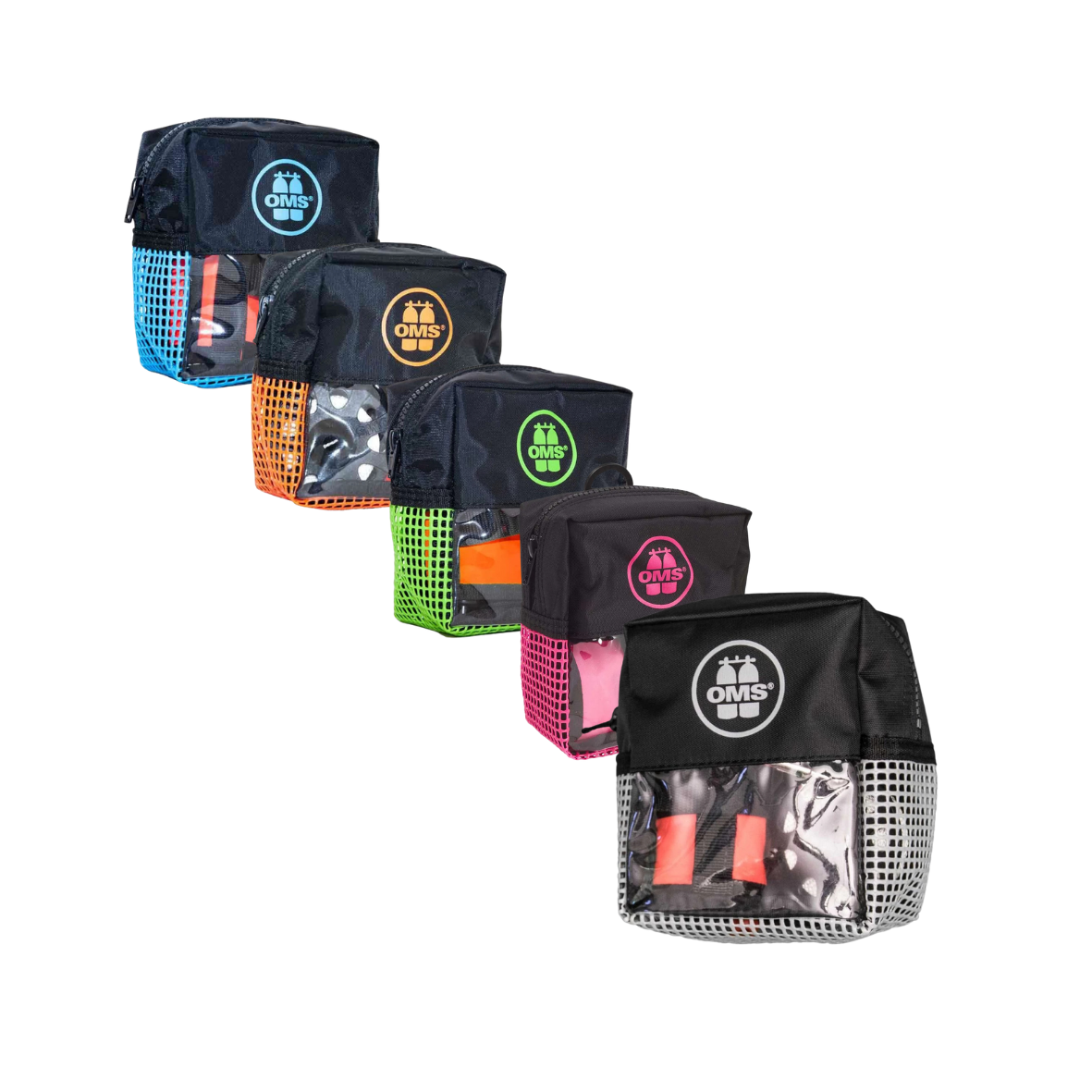 Zestaw bezpieczeństwa zawiera małą siatkową torebkę transportową, bojkę OMS (SMB) o długości 1m oraz profilowaną szpulkę wraz Double-Ender’em BigGrip ™ ze stali nierdzewnej. Kieszeń występuje w szerokiej gamie kolorystycznej.