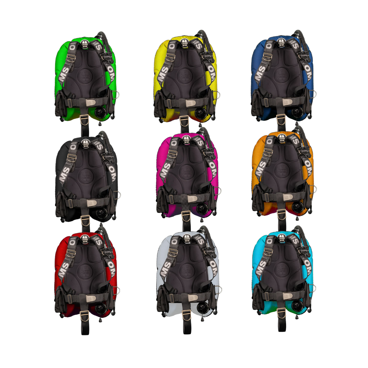 System OMS Smartstream o zawiera również dwa pasy mocujące do butli OMS z plastikowymi uchwytami, za pomocą których można bezpiecznie przymocować swoją butlę.