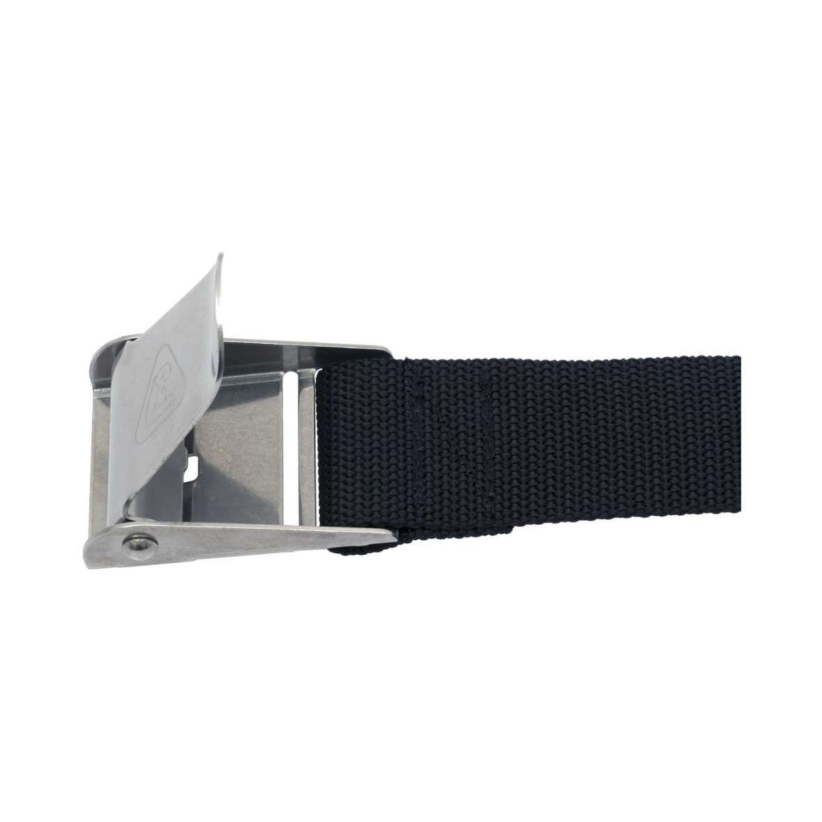 Klamra wykonana ze stali nierdzewnej zapewnia maksymalną wytrzymałość oraz odporność na korozję, dlatego sprawdza się w każdych warunkach nurkowych. Co więcej, system quick-release umożliwia szybkie i intuicyjne odpięcie pasa w sytuacji awaryjnej, dlatego zwiększa bezpieczeństwo nurka.