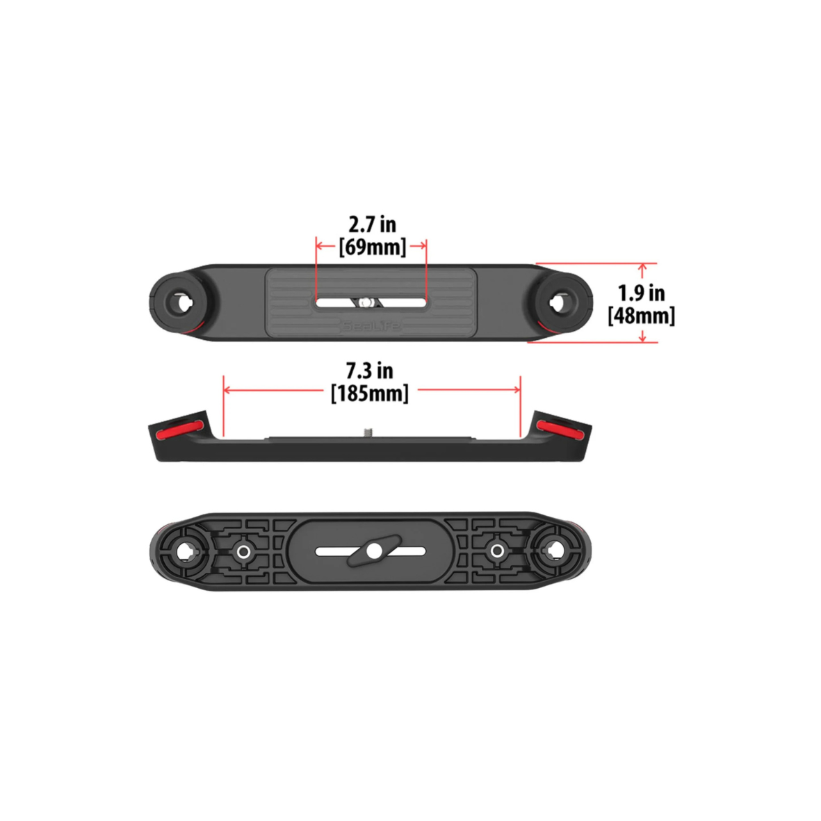 SeaLife Dual Tray Flex-Connect pasuje do wszystkich kamer i obudów posiadających standardowy gwint statywowy 1/4-20. Oznacza to, że możesz jej używać z kamerami SeaLife, ale także z innymi modelami.