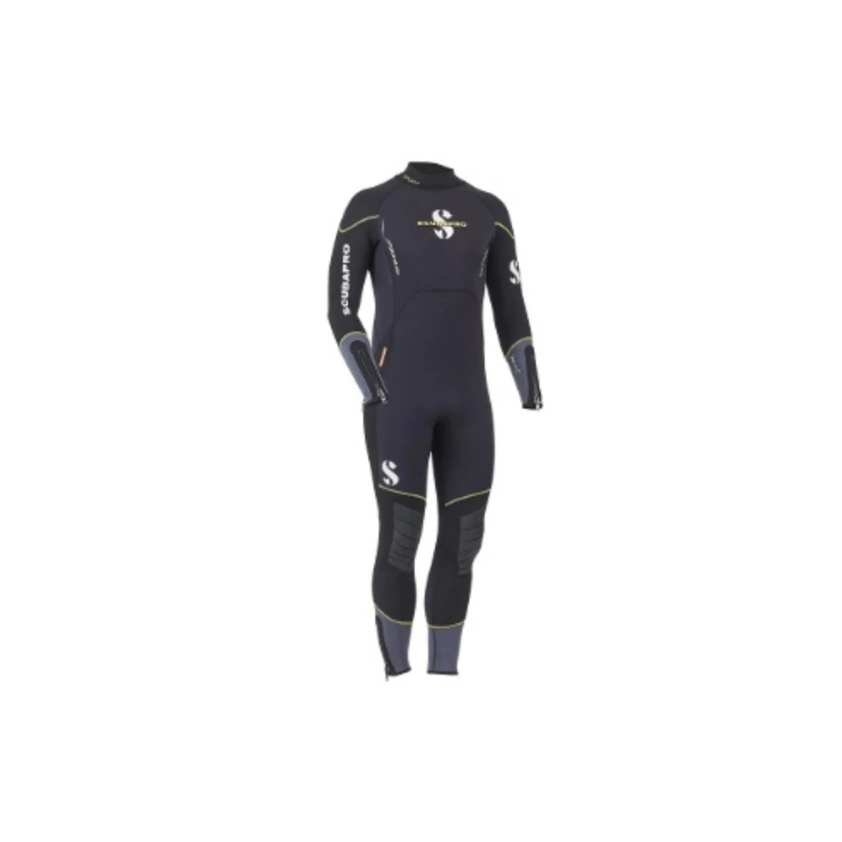 Pionowy tylny zamek YKK z mosiężnym suwakiem zapewnia trwałość oraz łatwą obsługę, natomiast zamki na kostkach i nadgarstkach ułatwiają dopasowanie skafandra. Dodatkowy haczyk na kaptur umieszczony na prawym biodrze zwiększa funkcjonalność zestawu nurkowego.