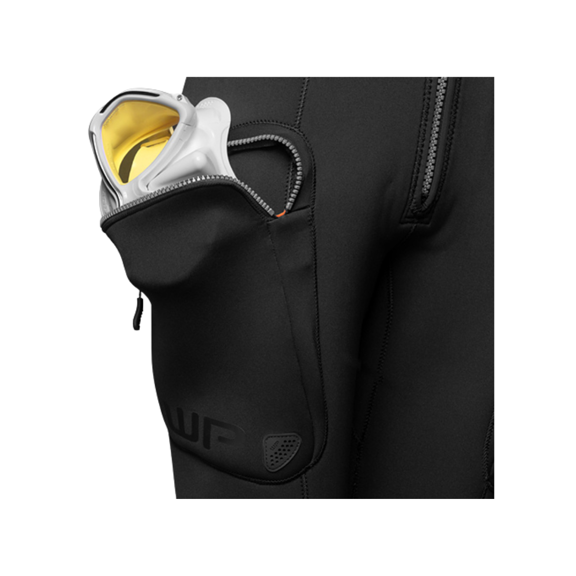 Skafander został wyposażony w wzmocnienia Kevlar® i Duratex, dlatego jest odporny na przetarcia i uszkodzenia. Dodatkowo odblaskowe elementy zwiększają widoczność, co poprawia bezpieczeństwo pod wodą.