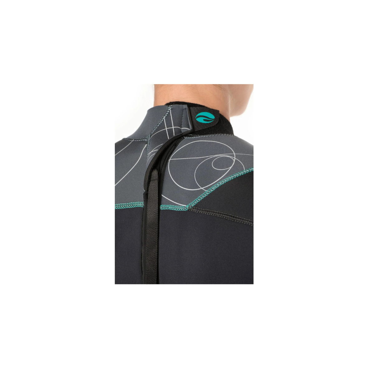 Model wyposażono w kryzę szyjną z rzepem Velcro, która ogranicza przedostawanie się wody, oraz długi, solidny zamek na plecach, ułatwiający zakładanie i zdejmowanie skafandra. Wzmocnione, klejone i szyte panele skutecznie ograniczają wnikanie wody, co zwiększa komfort cieplny i trwałość produktu.