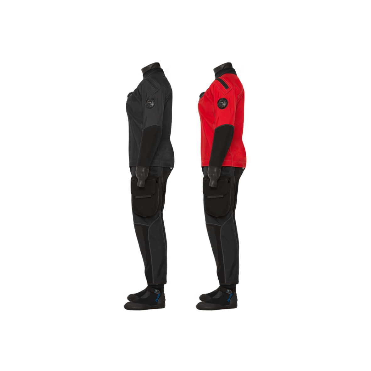 Bare Expedition HD2 Tech Dry standardowo wyposażono w dwie kieszenie techniczne TECH POCKET, które umożliwiają wygodne przechowywanie akcesoriów. Skafander posiada obrotowy zawór dodawczy 360° oraz regulowany zawór upustowy, co pozwala na precyzyjną kontrolę pływalności.