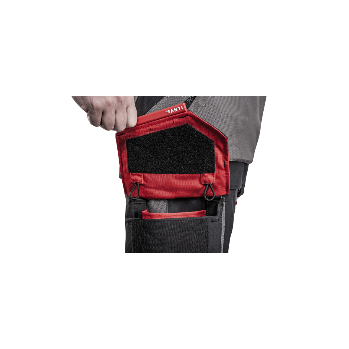 - Botki Flexsole oraz czerwone wewnętrzne szelki z kieszenią.