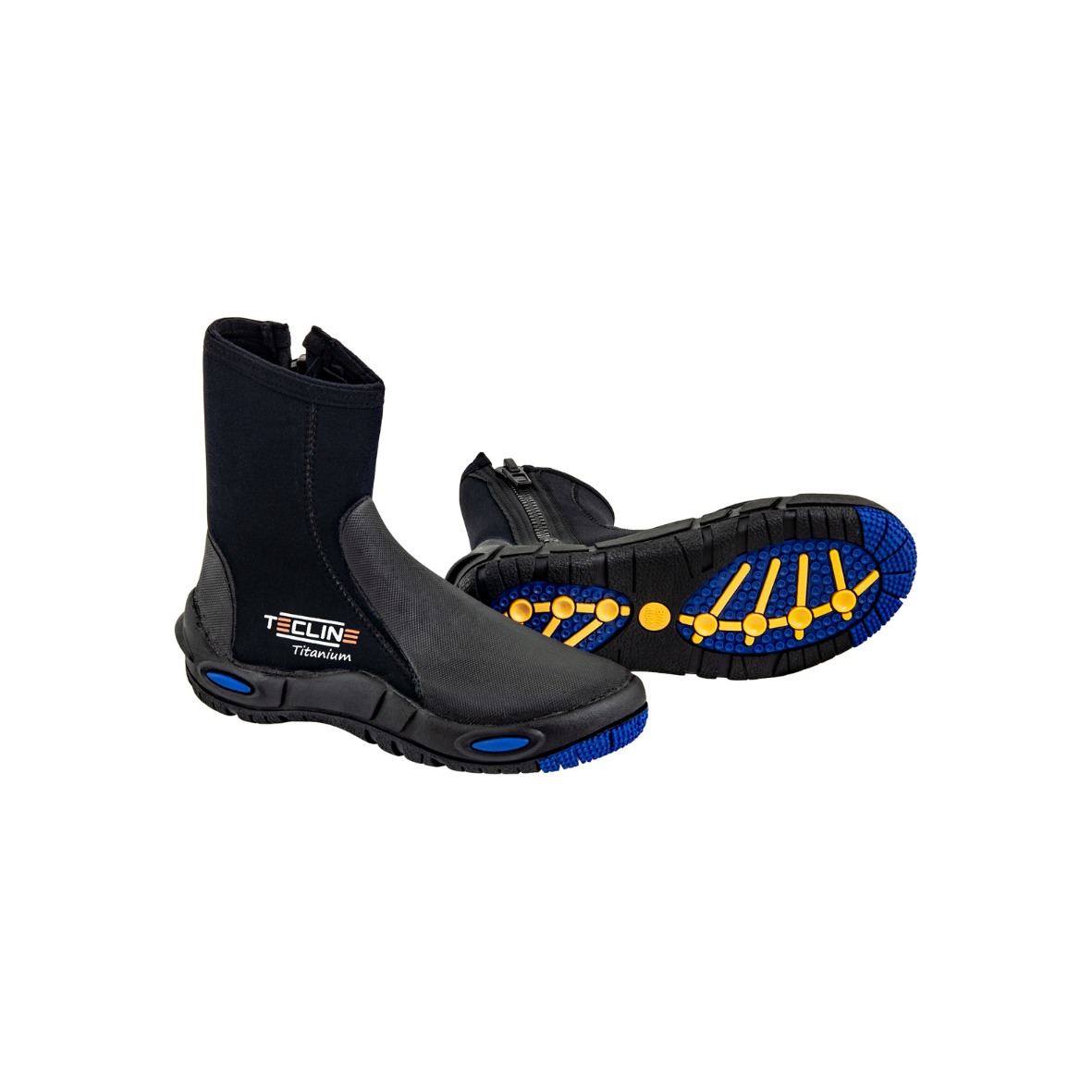 Buty nurkowe TECLINE KOMFORT-TITANIUM z 7mm neoprenu to bardzo wygodne buty, doskonałe do nurkowania w płetwach paskowych (regulowanych) oraz innych sportów wodnych, w tym również do morsowania! Ostroga na pięcie podtrzymuje pasek płetw i zapobiega ich spadaniu podczas nurkowania. Rowkowana podeszwa zapewnia lepszą przyczepność do podłoża i zapobiega poślizgowi. Gumowe wzmocnienie na podbiciu buta zapobiega zbytniemu uciskaniu, czy możliwemu obcieraniu przez płetwę regulowaną paskową.