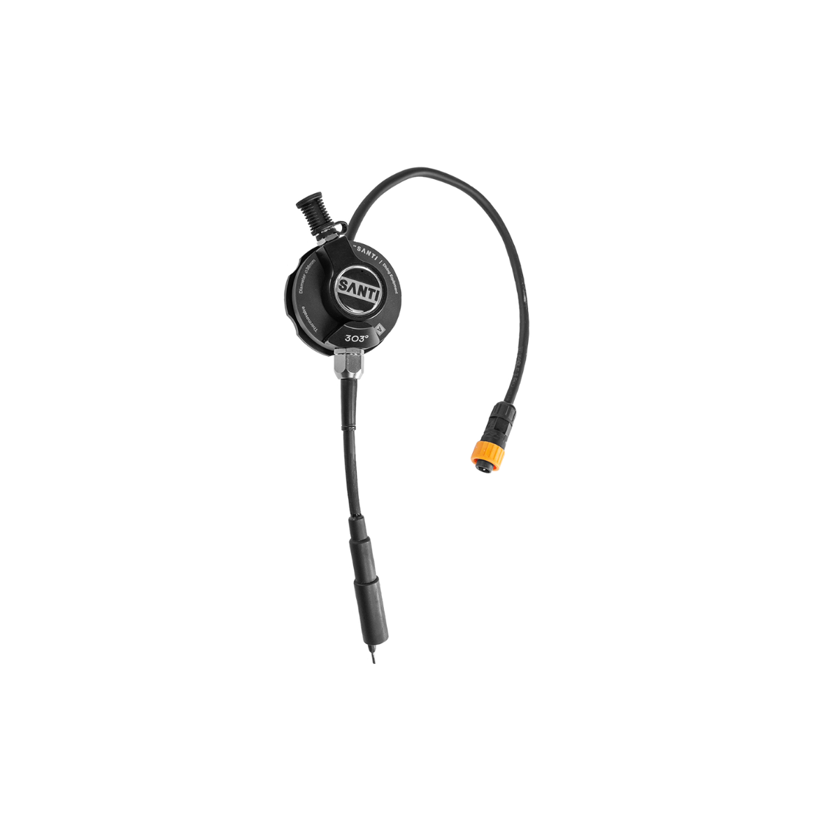 Zawór wyposażono w dwa złącza elektryczne po przeciwnych stronach – jedno do połączenia z baterią (wodoodporne złącze E/O cord), drugie do podłączenia odzieży grzewczej. Całość jest w pełni szczelna i odporna na działanie ciśnienia, co czyni termozawór SANTI 303 Apeks niezawodnym elementem każdego zestawu grzewczego.