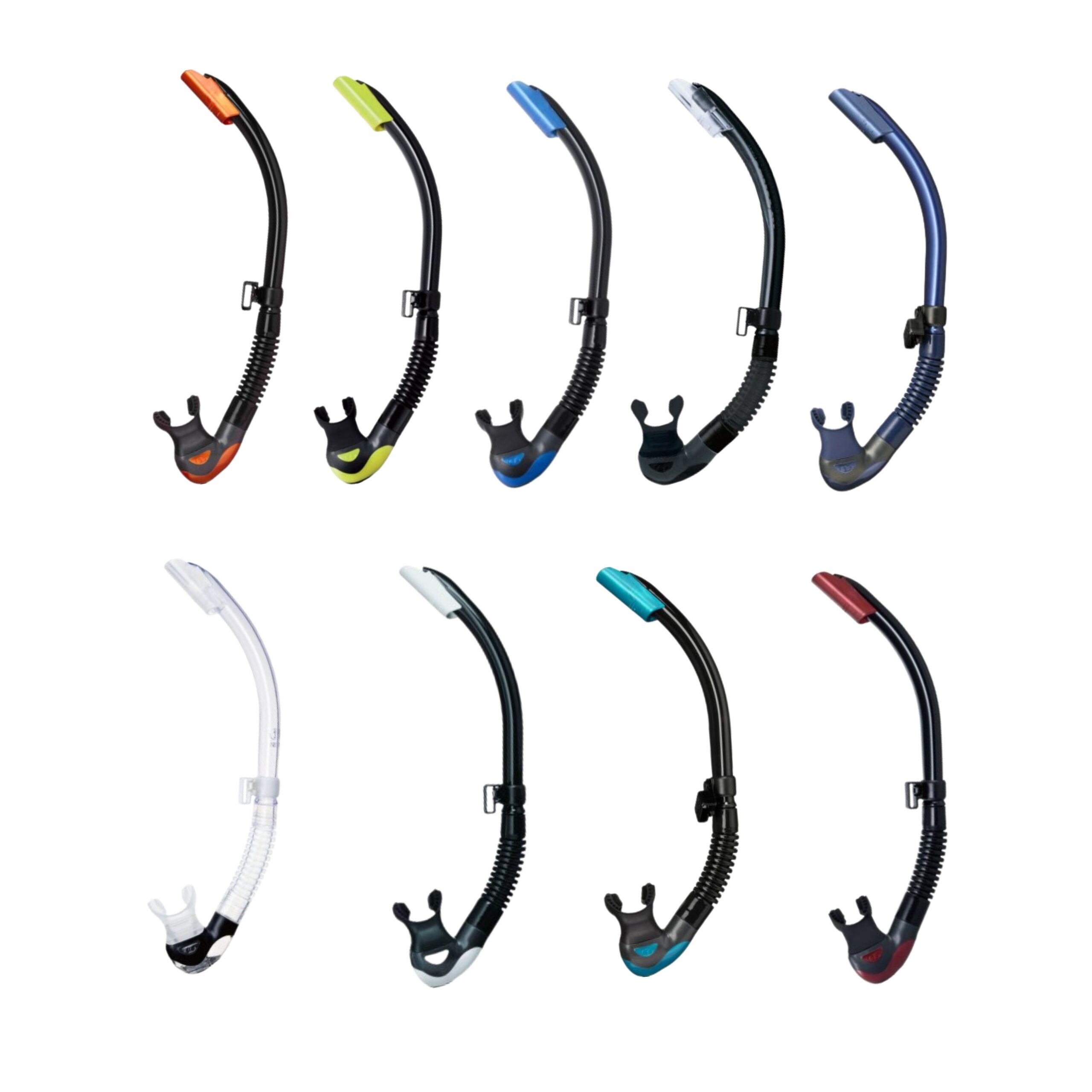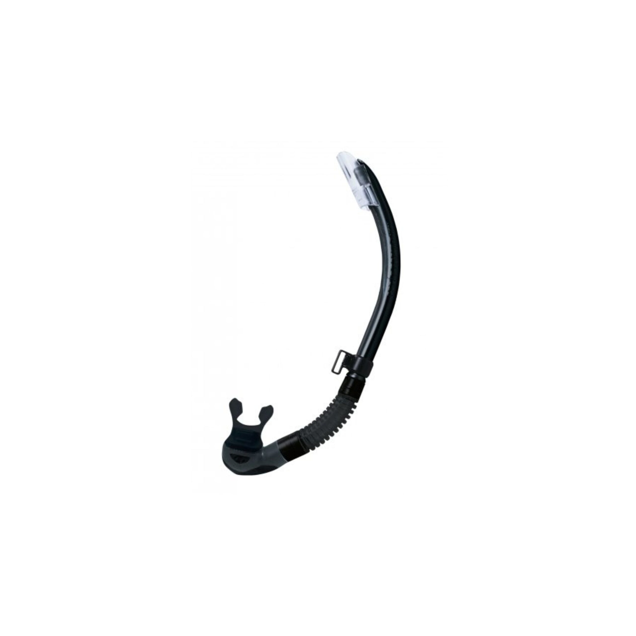 - Dużej objętości kanał i zawór oczyszczający – kraniec zaworu zawsze pozostaje w najniższym miejscu, nawet podczas nurkowania pionowo w stosunku do lustra wody. Oczyszczanie z wody jest zatem łatwe w każdym momencie. Zapobiega to także bulgotaniu podczas oddychania.