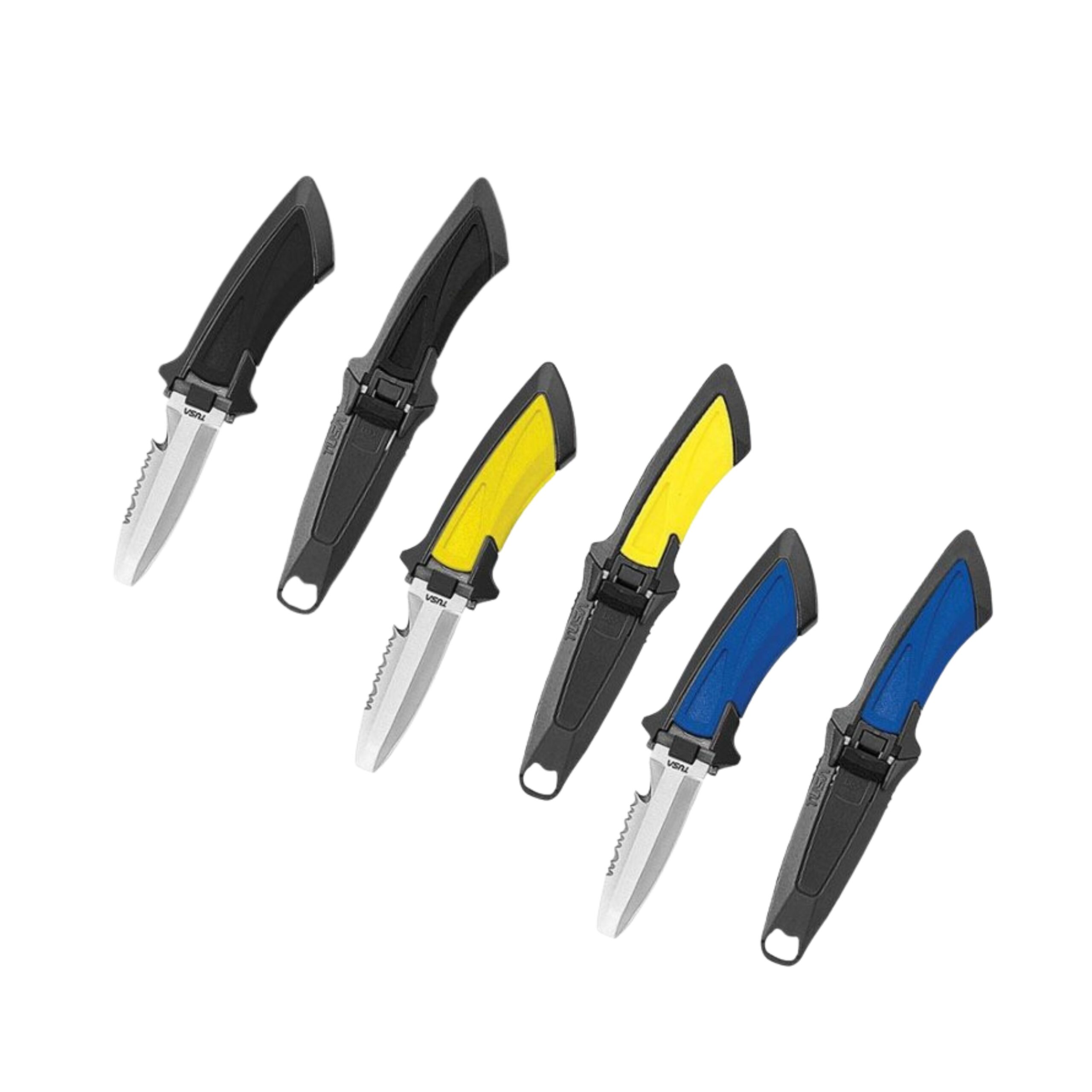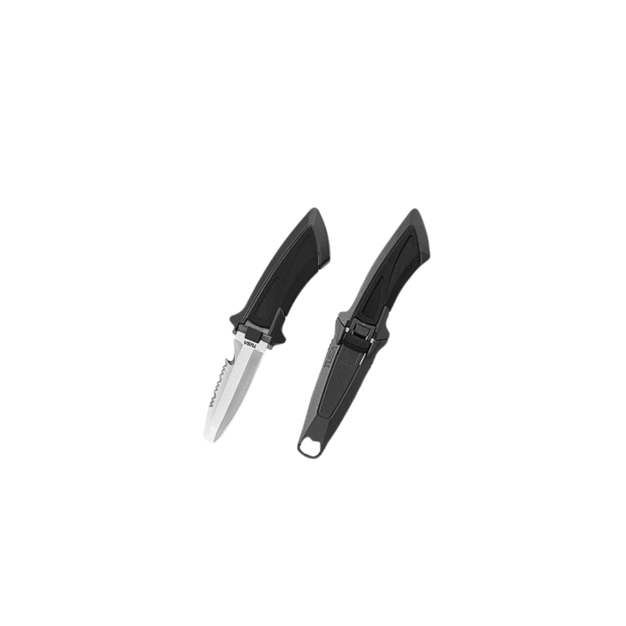 - Zawiera ząbkowaną krawędź oraz obcinacz lin