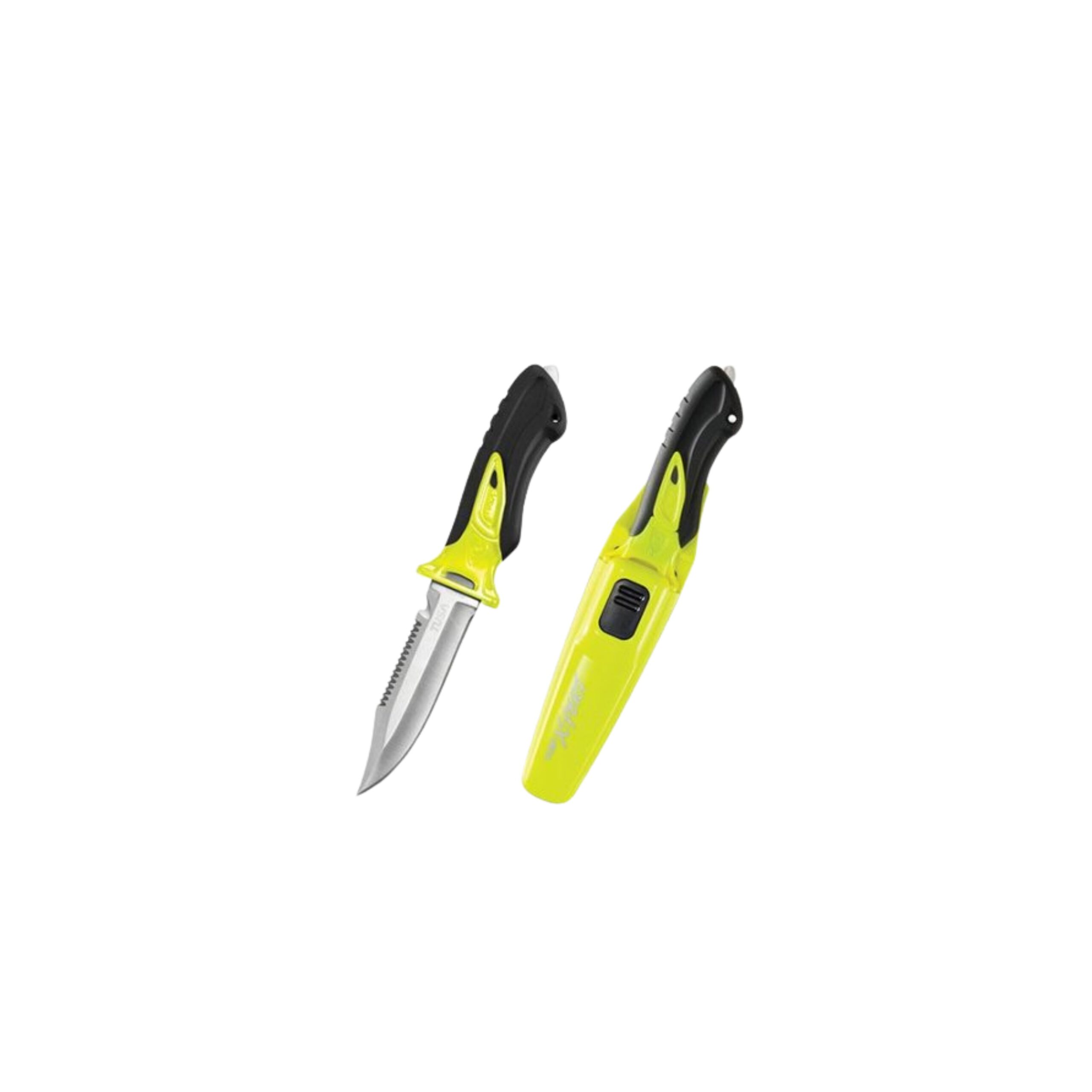 - Zawiera ząbkowaną krawędź oraz obcinacz lin