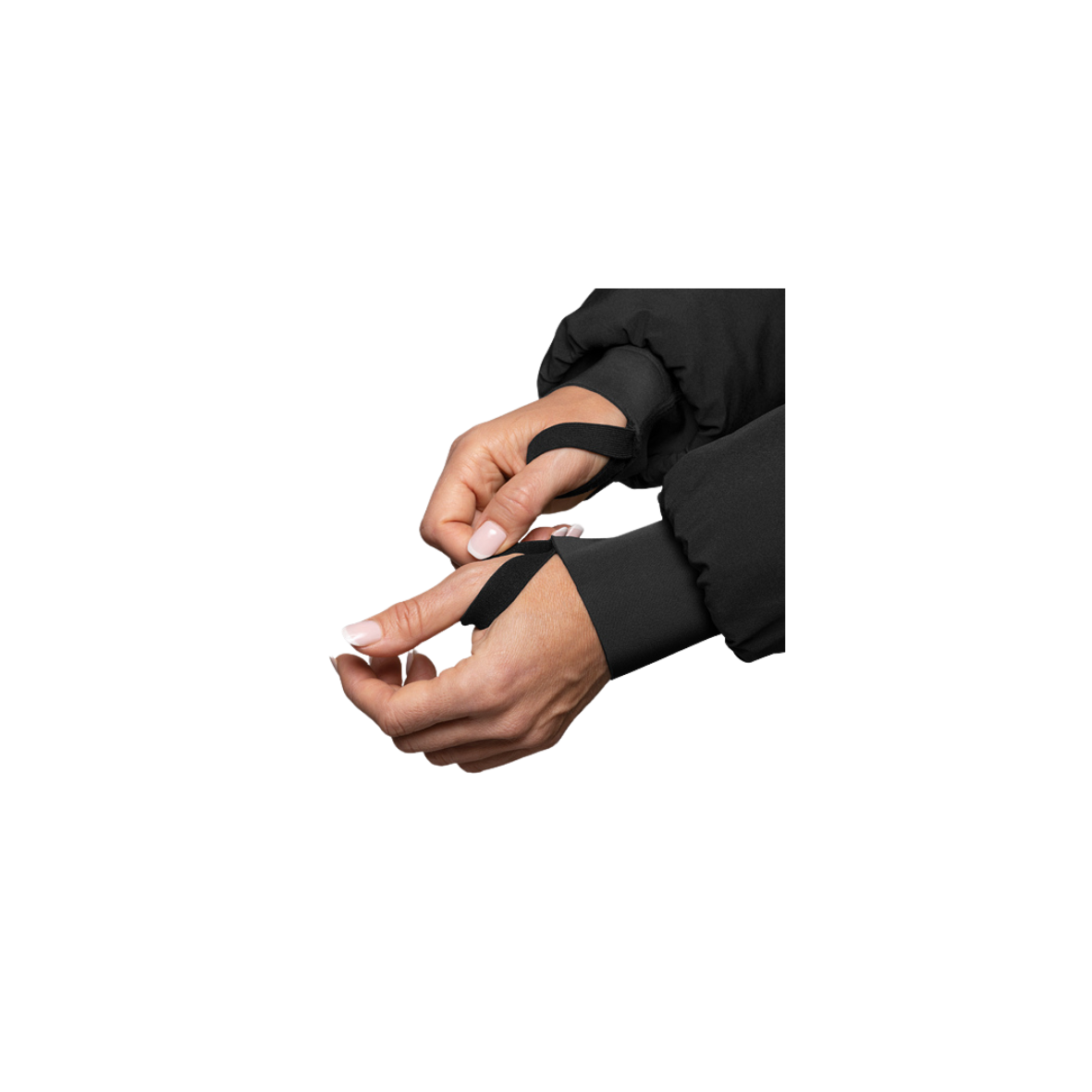 - Neoprenowe mankiety z pętlami na kciuki – zapobiegają przesuwaniu się materiału i zapewniają lepsze dopasowanie.